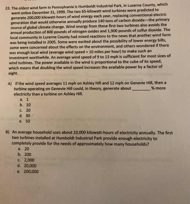 Solved 23 The Oldest Wind Farm In Pennsylvania Is Humboldt Chegg Com