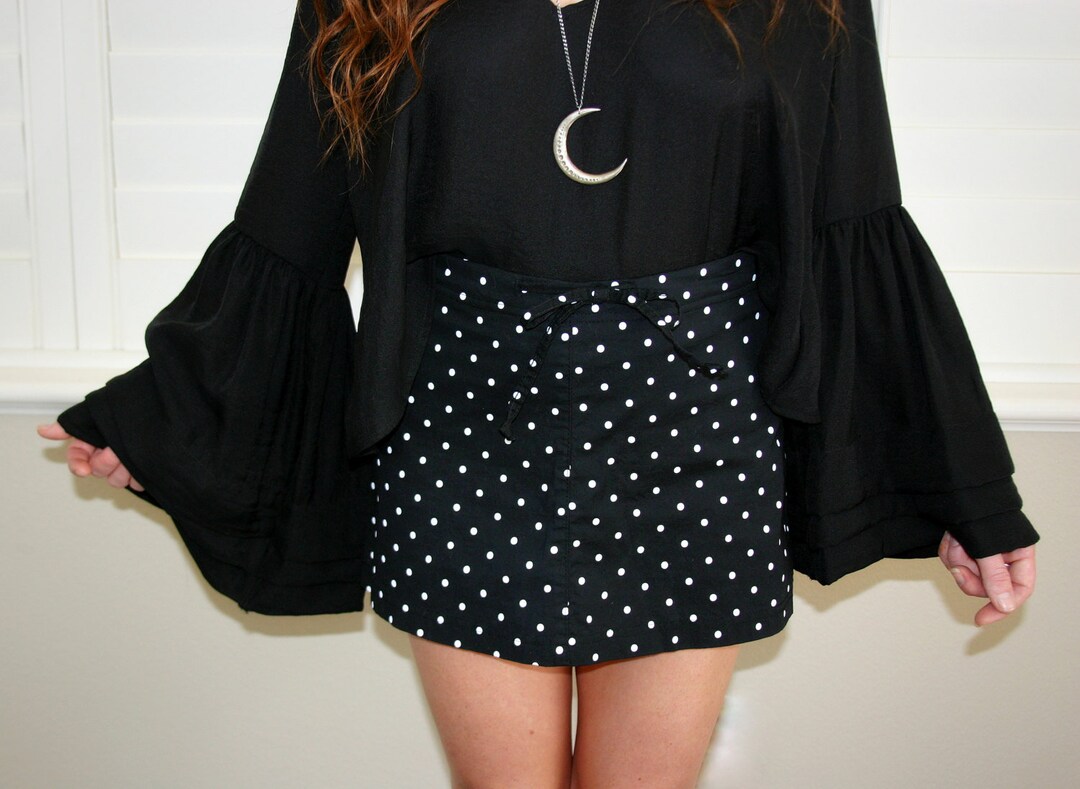 Vintage Pin Up High Waisted Short Black Polka Dot Mini Skirt Etsy Uk